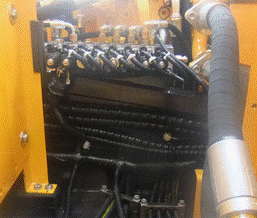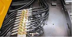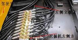 9個先導壓力傳感器位置由主閥上面移到駕駛室后面,如圖所示。由于先導管路順序發生了變化,所以電氣系統9個壓力傳感器線束走向和連接順序也進行變化,先導線束從左側立板處分出,直接拉到先導閥塊處。但是同樣保證每個動作壓力傳感器信號號碼和C8M一樣,