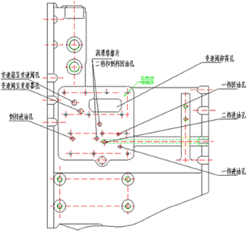 Ⅰ- Ⅰ為變速操縱油進油口;Ⅱ-Ⅱ為變速箱淋油進油口;Ⅲ-Ⅲ為變速箱冷卻進油口。
