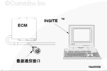 條件 連接所有部件。 采取措施 使用 INSITE™(零件號(hào) 3825145)清除所有非現(xiàn)行故障代碼。 注:數(shù)據(jù)通信接口接頭位于飛輪殼右排上。 |
