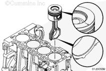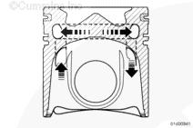 康明斯ISF3.8 CM2220 AN 和 IAN 發動機活塞冷卻液噴嘴向活塞底面供應機油。活塞頂部中鑄有冷卻油道。可以使用加大尺寸的活塞。 請參考第 1 節中的步驟 001-026 以了解缸體維修信息。可以使用加大尺寸的活塞環。