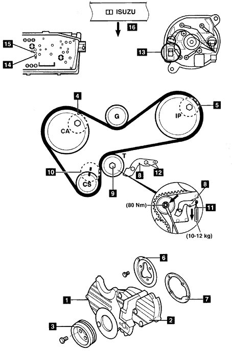 注意:從發動機的前部應該可以讀到皮帶上的字母‘ISUZU’(如圖16所示)。