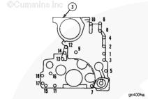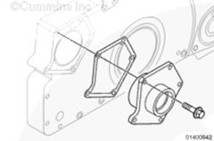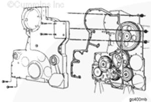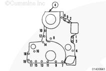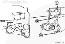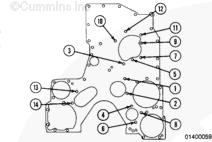 安裝康明斯KTA柴油發(fā)動機齒輪室蓋和相關部件。參考步驟 001-031。