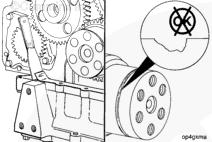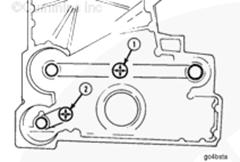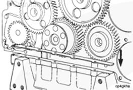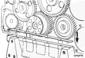 使用曲軸旋轉(zhuǎn)發(fā)動機,直至凸輪軸齒輪和曲軸齒輪上的指示標記彼此相對。