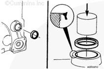 清潔并檢查能否繼續(xù)使用,一件式設計,全部應用,從康明斯KTA柴油發(fā)動機油底殼適配器頂部上拆下密封墊,但是不要拆下隔板下方的密封墊。檢查曲軸的油封位置中有無損壞。參考步驟 001-023。