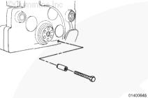 拆下將燃油泵驅(qū)動固定到前齒輪室蓋上的 4 個螺釘。不需要從離缸體最近的驅(qū)動底部上的雙頭螺栓上拆下螺母。參考步驟 009-011。