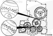 凸輪軸惰輪軸和液壓泵惰輪軸中的油孔必須按照特定方位安裝。如果軸的方位不正確,則會導致齒輪襯套故障。