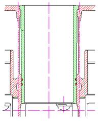 濕式缸套結構,缸套厚8.5mm。強度高,變形小,有利于降低機油耗;采用上止口定位,制造性能好;缸孔表面容易強化,耐磨性好,壽命長;維修性好;而且采用濕式缸套結構,氣缸體鑄造容易,廢品率低。