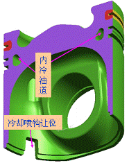 潤滑油沿環形油道圍繞燃燒室流動,可很好的冷卻活塞