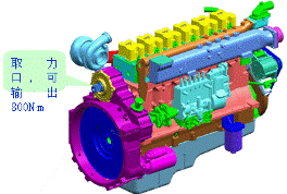 ¢      配套適應性高:采用后置齒輪室,使發動機更窄,可以適合國內各種重型車底盤。