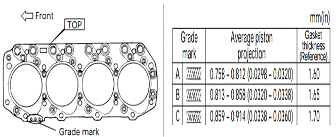 1.選擇適當厚度的缸蓋墊,活塞頭部突出量最大與最小之差不能超過如下所示,并根據下表確定缸墊厚度
