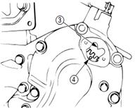 •          將噴油泵正時觀察孔指針③和凸輪軸正時齒輪標記“O” ④對齊