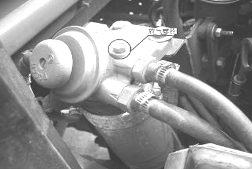 排放燃油系統中的空氣時,應該先旋轉燃油濾清器頂部的放氣螺塞,將其松開,按壓手油泵,直到從放氣孔中流出無空氣的燃油。緊固放氣螺塞。