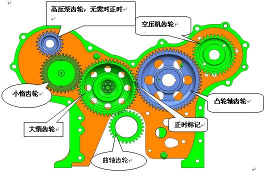 電控柴油發(fā)動(dòng)機(jī)齒輪間隙及記號(hào)對(duì)正: