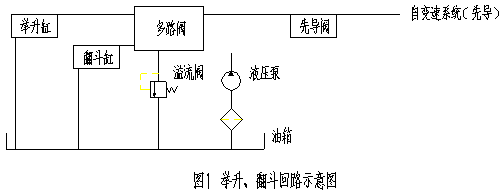結(jié)合舉升、翻斗回路示意圖,分析舉升、翻斗無(wú)力的原因如下: