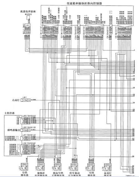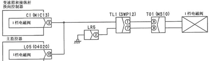 2)變速箱和操縱桿控制器C1(雌)(3)-TL1(1)-T01(H)之間線束與電源短路,與機(jī)箱接地短路,觸點(diǎn)有故障或斷開(kāi)