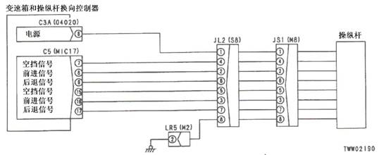2)變速箱和操縱桿控制器C1(雌)(8)L76(1)之間線束與電源短路,與機(jī)箱接地短路,觸點(diǎn)有故障或斷開(kāi)