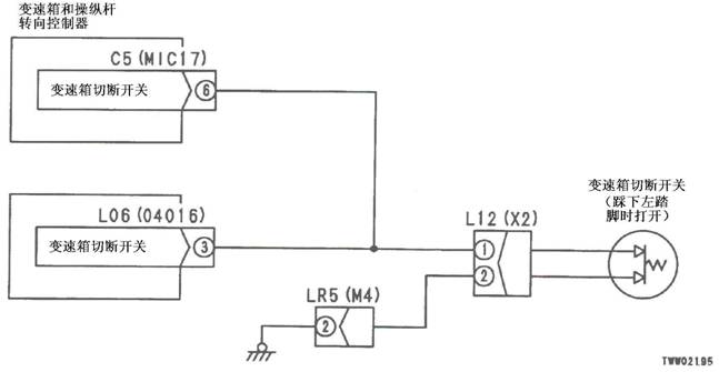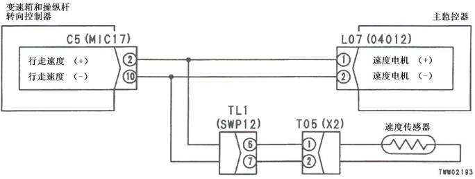 4)變速箱和操縱桿控制器C5(雌)(10)-TL1(12)-T05(2)之間線束觸點(diǎn)有故障或斷開(kāi)