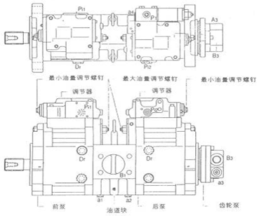 柱塞式串聯變量雙泵,最大排量1402ml/r,該泵按總功率恒定進行變量。