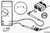 如果測量結果大于 10 歐姆,回路電源導線中存在開路。維修導線,或更換線束。參考 OEM 故障診斷及排除手冊。