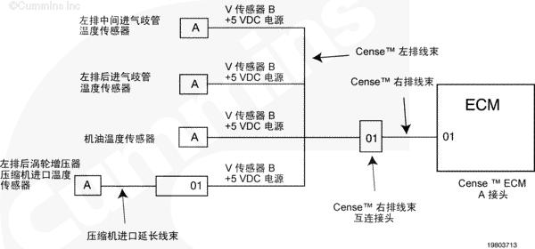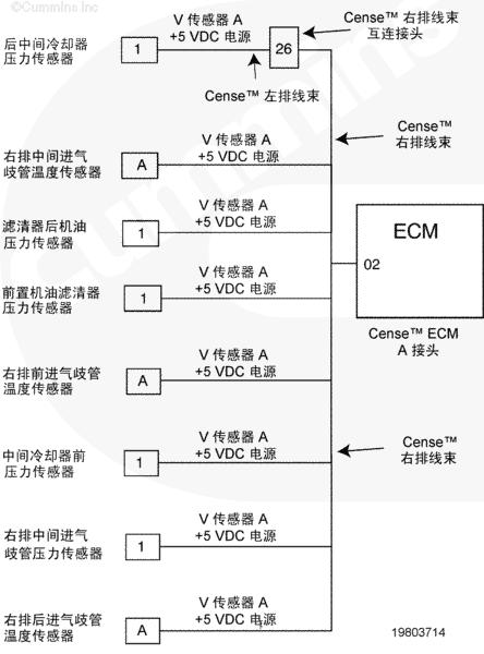 康明斯QSK78發動機V 傳感器 A +5 VDC 電源電路圖 |