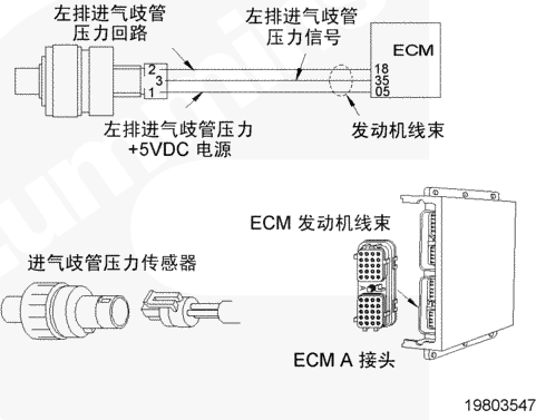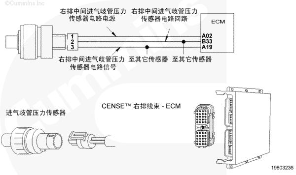 該故障可能的故障模式有觸針之間對信號或電源線上的接地短路、傳感器損壞或者 CENSE™ ECM 中電源損壞。