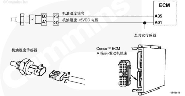 康明斯QSK78發動機V 傳感器 B +5 VDC 電源電路圖 |
