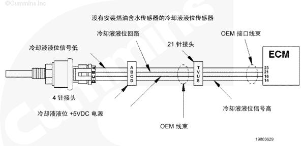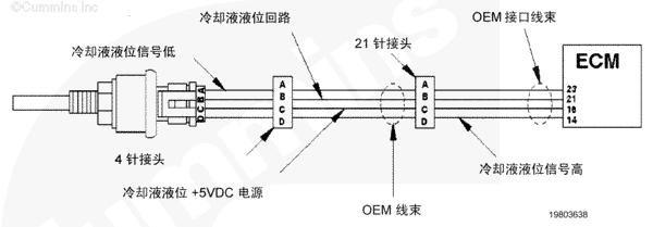 冷卻液液位傳感器監測冷卻系統中的冷卻液液位,并將信息通過 OEM 線束傳送至 CM500 康明斯QSK78電子控制模塊 (ECM)。
