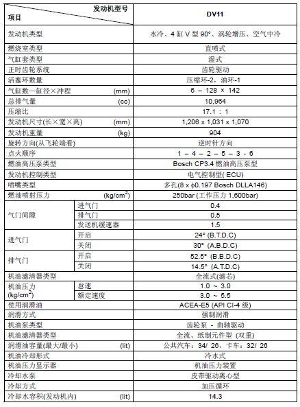 韓國斗山大宇發(fā)動(dòng)機(jī)規(guī)格詳細(xì)的技術(shù)參數(shù)(Engine Specifications)