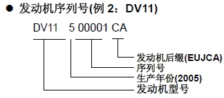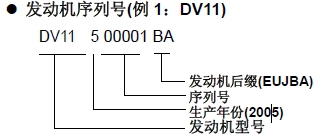 發(fā)動(dòng)機(jī)型號和序列號設(shè)置在圖示位置。當(dāng)尋求必要的產(chǎn)品保證和部件訂購時(shí),這些數(shù)字是必要的。同時(shí)通過各數(shù)字的位置也指明了發(fā)動(dòng)機(jī)的型號和系列號。