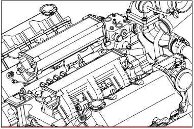 � 松開渦輪增壓器固定螺栓并從排放歧管中取出渦輪增壓器。