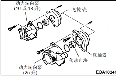 � 松開動力轉向泵固定螺栓,卸下動力轉向泵和傳動聯軸器。