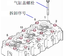 � 按與安裝相反的順序松開氣缸蓋固定螺栓,全部卸下并取出氣缸蓋。