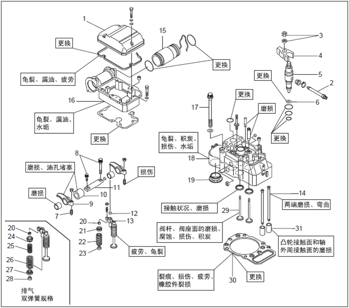 2. 進(jìn)排氣系統(tǒng)的解體,檢修,組裝