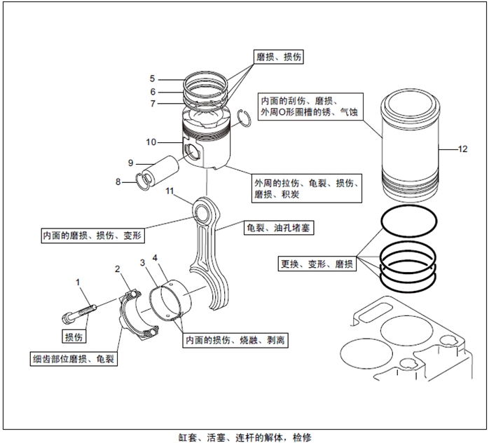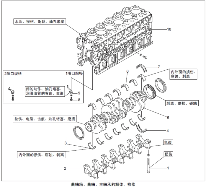 (2) 檢查曲軸箱的缸套安裝部位,確認(rèn)無壓損、腐蝕等異常。