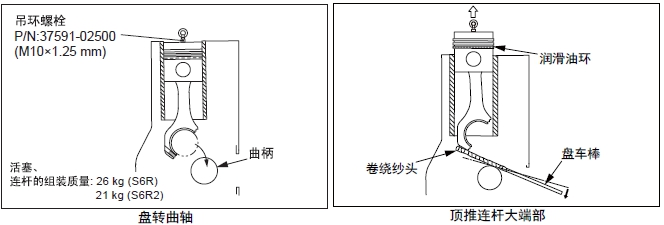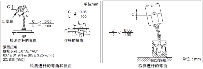 注: 彎曲和扭曲的檢測,在將連桿端蓋按照規(guī)定扭矩緊固后進(jìn)行。