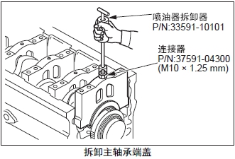 注: 主軸承端蓋的緊固要領(lǐng),參照「發(fā)動(dòng)機(jī)本體的組裝」的「安裝主軸承端蓋」項(xiàng)。