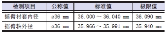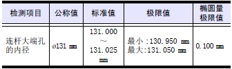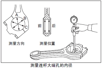 測量大端孔內(nèi)徑時(shí),分別按照圖示A、B、C 方向,測量前后2 處。將A、B、C 的最大值減去最小值為橢圓量。超過極限值時(shí)更換新品。