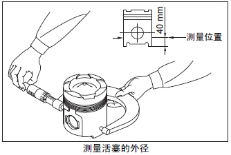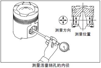 測量活塞銷的外徑。超過極限值時(shí)更換新的活塞銷。