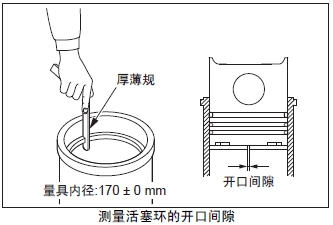 注: 用活塞將活塞環(huán)水平地放入標(biāo)準(zhǔn)的量器或缸套內(nèi)。
