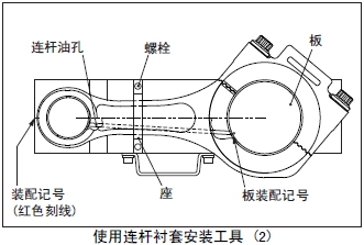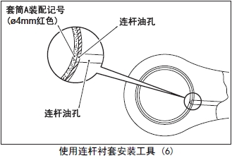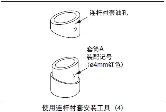 (1) 將新的連桿襯套的油孔對準(zhǔn)套筒A的裝配記號(ømm 紅色)裝在套筒A上。