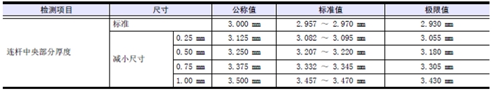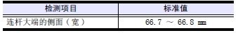 (2) 檢測連桿大端的側(cè)面( 寬)。不在標(biāo)準(zhǔn)值內(nèi)時(shí),更換新品。