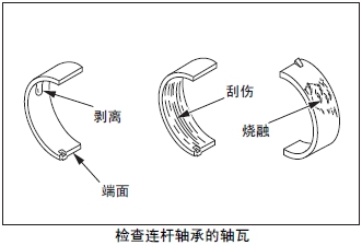 查連桿軸承軸瓦的滑動(dòng)面,背面和端面,如有接觸不良、滑動(dòng)損傷、腐蝕、異物嵌入等異常時(shí)更換新品。
