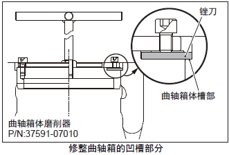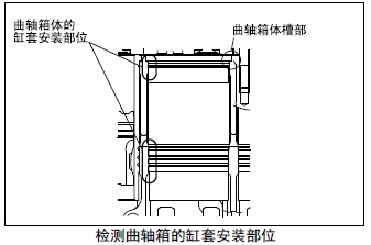 (1) 檢查曲軸箱的凹槽部分,確認(rèn)角部無裂損,與缸套凸肩下面接觸部分無單側(cè)接觸。有異常時(shí),修整曲軸箱的凹槽部分。