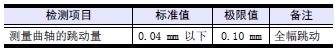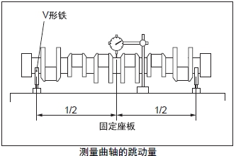 將曲軸的前后端軸頸座在V 型鐵塊上,測量中央軸頸的跳動(dòng)量。參照標(biāo)準(zhǔn)值,跳動(dòng)量較小的用研磨方法修正。跳動(dòng)量較大的用壓力器校正。超過極限值時(shí)更換新的曲軸。使用研磨或壓力機(jī)修理時(shí),要對各部位進(jìn)行磁性探傷檢查,確認(rèn)沒有有害的裂痕或損傷。