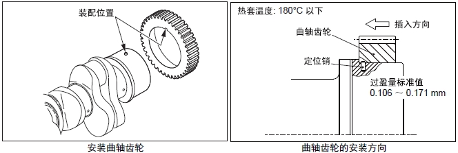 (1) 測量曲軸外徑和曲軸齒輪的內(nèi)徑,確認(rèn)過盈量。