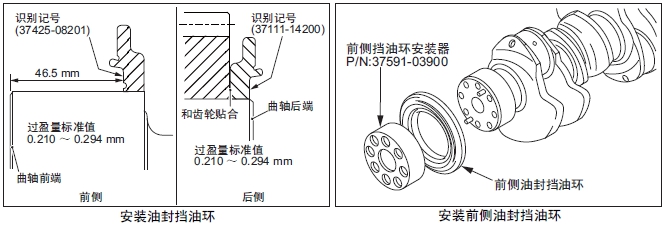 (1) 測量曲軸外徑和油封擋油環(huán)的內(nèi)徑,確認(rèn)過盈量。