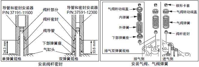 注: 雙彈簧規格時,進氣側和排氣側的零件構成不同,注意不要裝錯。