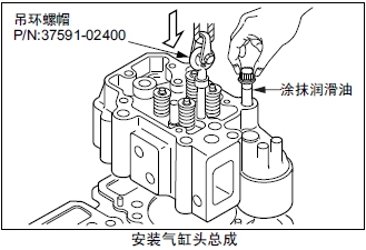 (2) 在雙頭螺栓上安裝吊環螺帽,將氣缸頭總成吊起。