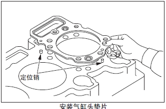 (2) 將涂抹液狀墊料后的氣缸頭墊片,對準定位銷后安裝。