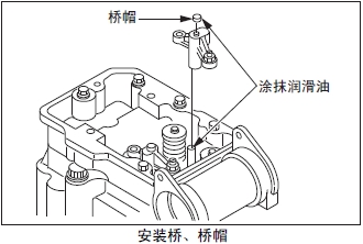 (3) 橋帽涂抹潤滑油,安裝在橋上。注意橋帽不要從頂桿孔落入曲軸箱內。